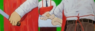 "In style and subject matter Weston Riffle's work brings to mind the social realism movement that had its heyday in America and Mexico between the two world wars-a realism that both celebrated working people and critiqued the socio-economic and political forces that create inequality. At first glance, the brilliantly colored paintings of farm workers and fishermen seem to be simply celebrations of California rural life- and they certainly are that -until we notice the hidden faces and the repetition of identical figures. It is as if the farm workers in their anonymity are just so many interchangeable parts in a larger machine. Or perhaps the repetitive nature of their back-breaking work has rubbed the individuality out of them. The political makes itself known through the personal."