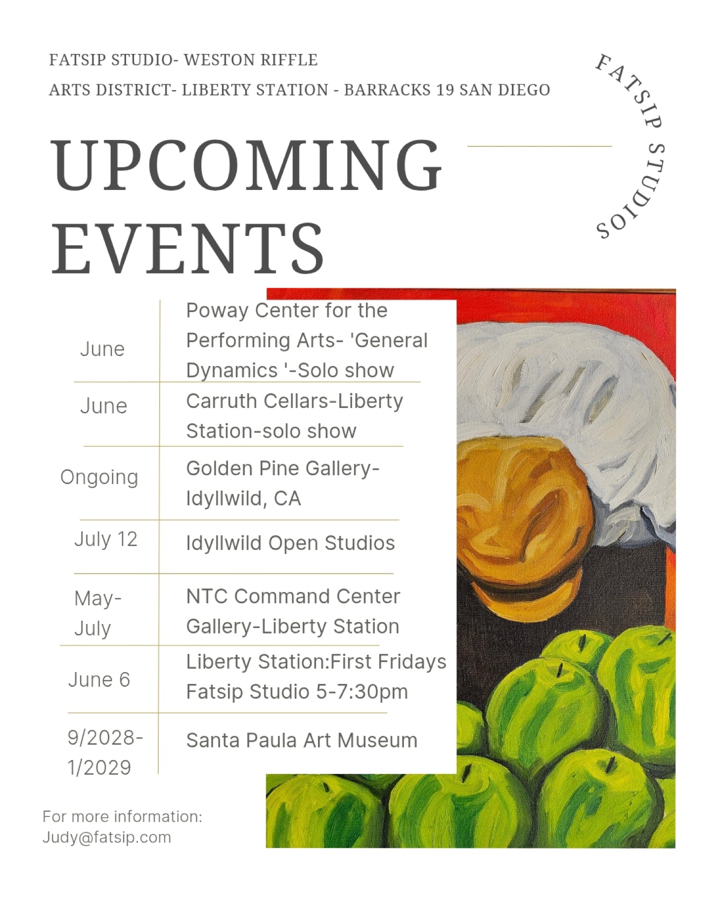 For a studio visit at either location: email-contact@fatsip.com